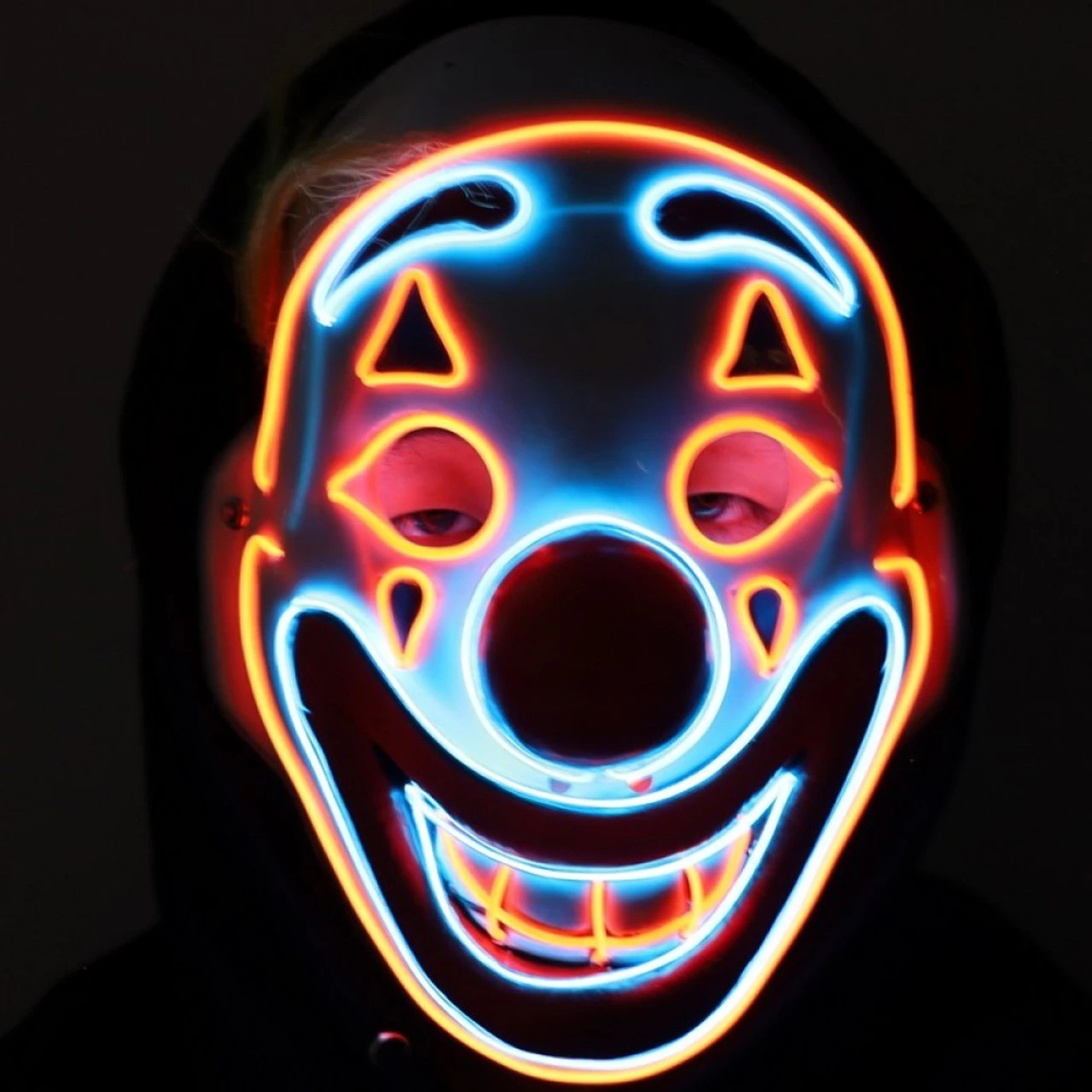 Le masque lumineux de clown arc-en-ciel comprend : * 1 masque