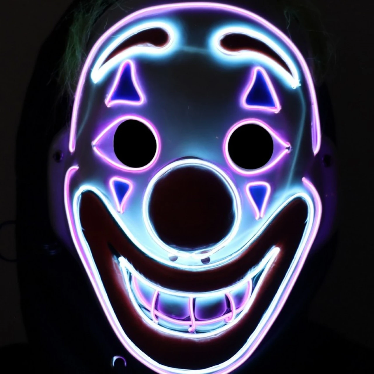 Le masque lumineux de clown arc-en-ciel comprend : * 1 masque