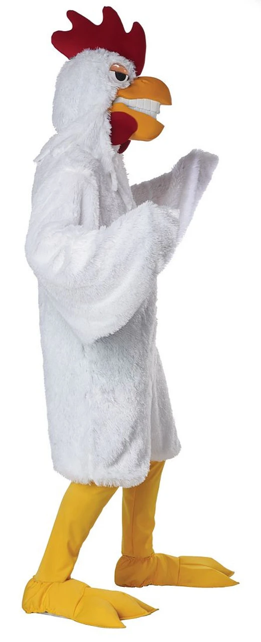 T’es quoi, un poulet? Qui ne voudrait pas porter ce costume? La Mascotte de Poulet Quack pour Adultes comprend une combinaison blanche duveteuse avec des manches surdimensionnĂ©es et des ouvertures au niveau des mains, un tissu jaune doux sur les jambes et des couvre-chaussures assortis pour donner l’apparence de pattes de poulet. Le masque est fait du mĂŞme tissu que la combinaison avec des accents rouges et un bec jaune avec un grand sourire Ă dents et des yeux dĂ©tendus.Â