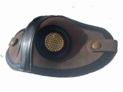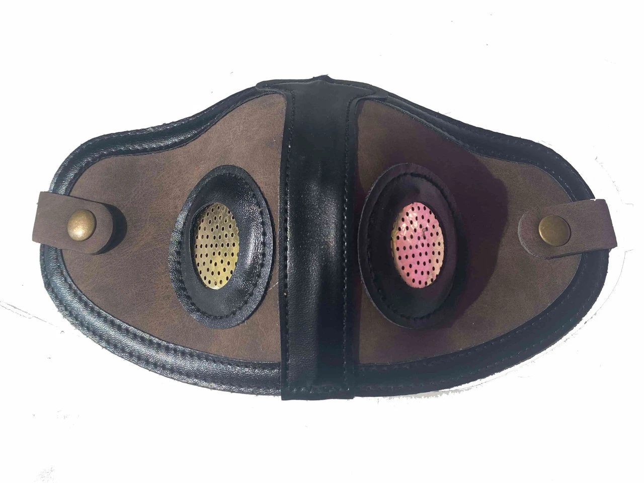 Complete your Halloween look with this Leather Style Face Mask Deluxe. The hand stitched leather like face mask features metal buckles, rivets adjustable with elastic backstrap: absolutely stunning!Â
