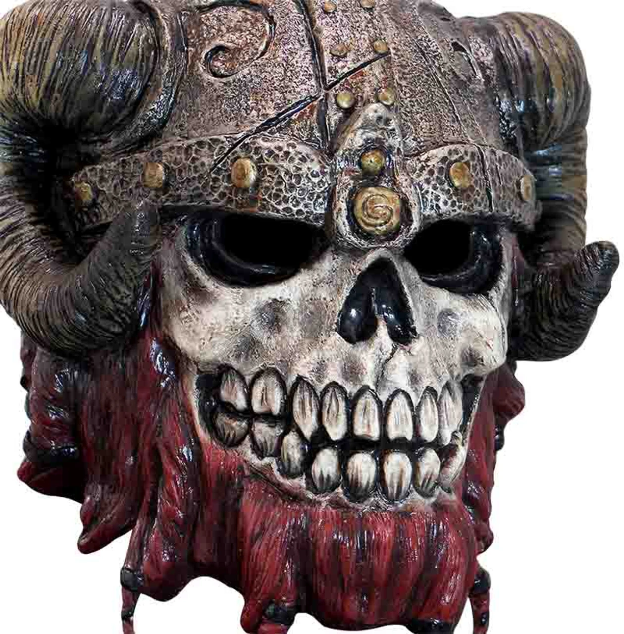Devenez le célÚbre pirate dans ce Masque Squelette Barbe Rouge! Naviguez sur les sept mers dans ce masque en latex complet comprenant un visage de crùne avec des trous pour les yeux, un casque et une barbe rousse.
