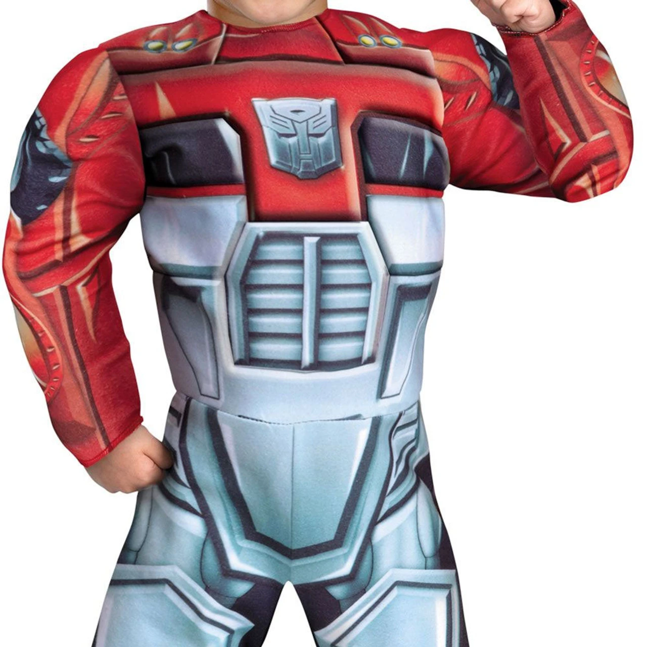 Votre Bambin pourra vivre d’excitantes aventures et mettre les Autobots en sécurité avec ce costume d’Optimus Prime. Pour vaincre le sinistre Mégatron et les Decepticons, il pourra revêtir cette combinaison d’Optimus bleue, rouge et argentée, avec une armure musclée et des bras musclés, et le masque du personnage. Le Costume d’Optimus Prime musclé pour bambin comprend : *Combinaison torse et bras musclé *Masque du personnage