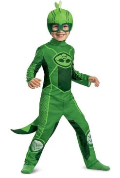 Les Pyjamasques sont une Ă©quipe de jeunes superhĂ©ros qui luttent contre le crime la nuit et vont Ă l’école pendant la journĂ©e. Gluglu (Gekko) a pour vrai nom Greg et a des super pouvoirs comme les Super Muscles de Gekko et le Super Camouflage de Gekko! Votre bambin peut l’incarner avec ce PJ Mask Megacostume Gluglu pour Bambins sous licence officielle, qui comprend unecombinaison verte avec des Ă©cailles imprimĂ©es et le logo de Gluglu, ainsi qu’un masque de Gluglu avec une crĂŞte de gekko!Â