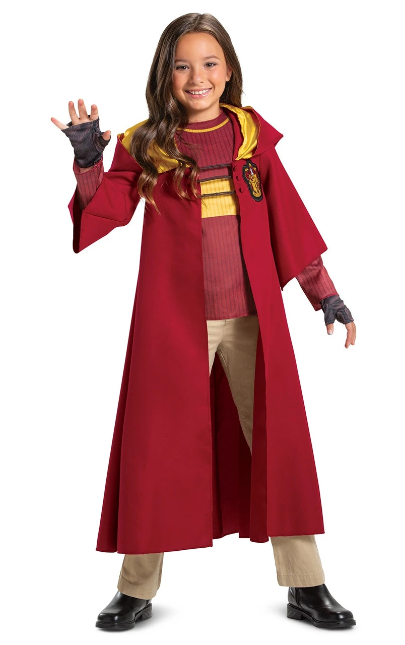 Jouez au meilleur sport sorcier sur des balais volants avec cette robe de quidditch de luxe ! La robe de Quidditch Harry Potter sous licence officielle comprend une robe rouge avec une capuche attachĂ©e, une doublure jaune, une fermeture Ă l’avant et l’Ă©cusson Gryffondor. Le haut Ă rayures rouges et jaunes et les mitaines complètent le look. La Robe Harry Potter Quidditch Deluxe comprend :Â