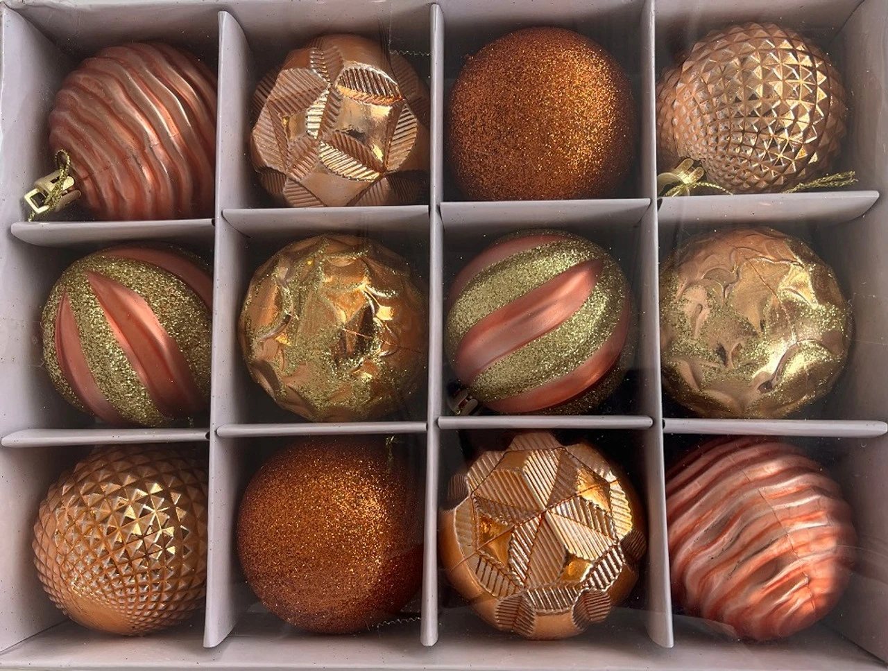Le Set de 12 Pièces de Boules de Noël Rose Doré comprend: