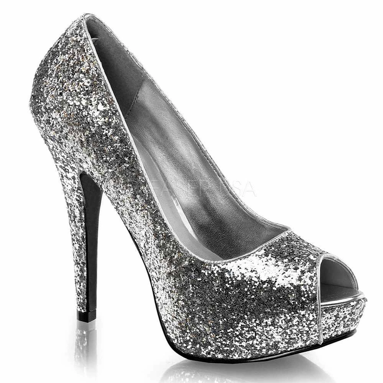 Twinkle Silver Glitter Peep Toe Pump with 5″ heel