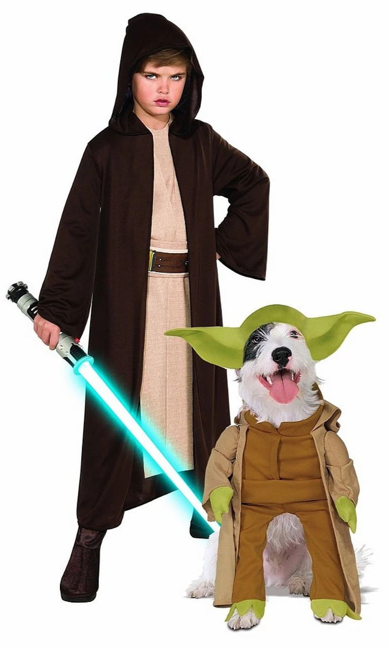 Does your child have what it takes to restore balance to the Force and save the galaxy? With his loyal companion dressed as the great Jedi Master Yoda by his side, there’s no doubt he will! This set of Star Wars costume features a Jedi Hooded Child Robe and a Yoda Pet costume. Watch them have adventures across the galaxy, and be sure to remind them: « Do, or do not. There is no try.