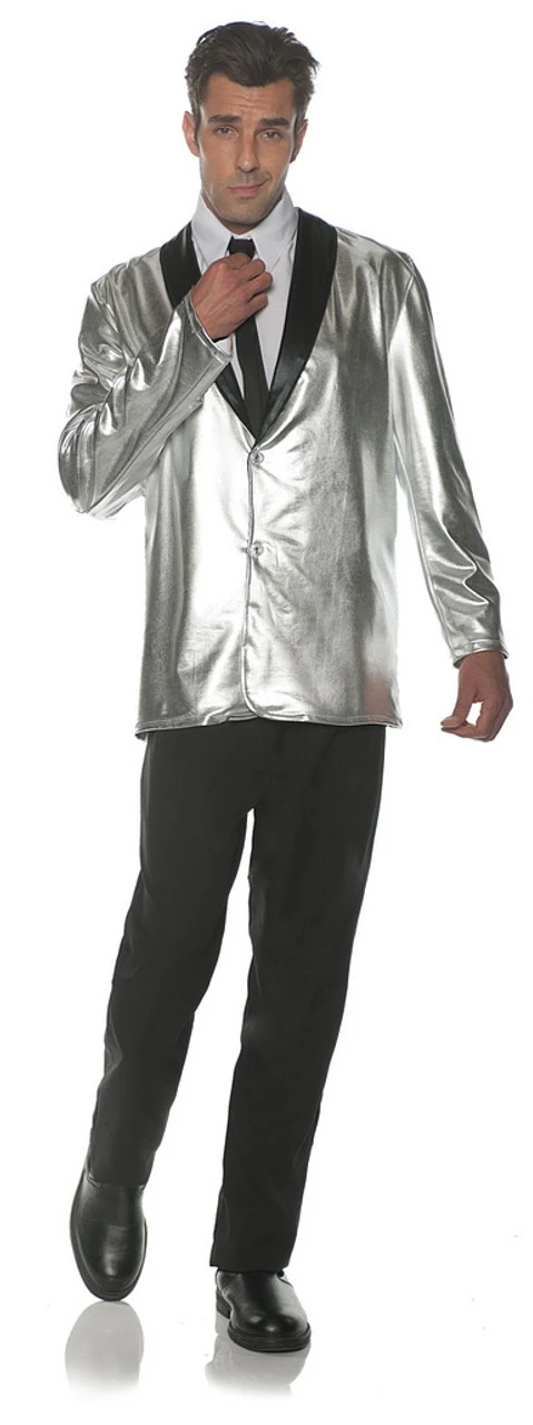 Vous aurez le plus beau costume de la fête avec ce superbe Veston Argenté Doo Wop, inspiré des années 50! Il comprend un veston argenté métallique avec un revers en satin noir.