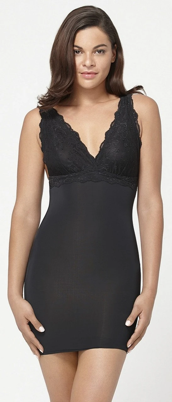 *Notre Yummie Tummie Robe caleçon Kim en noir est un magnifique caleçon amincissant, bordé de dentelle, qui ressemble à de la lingerie mais qui vous garde mince.