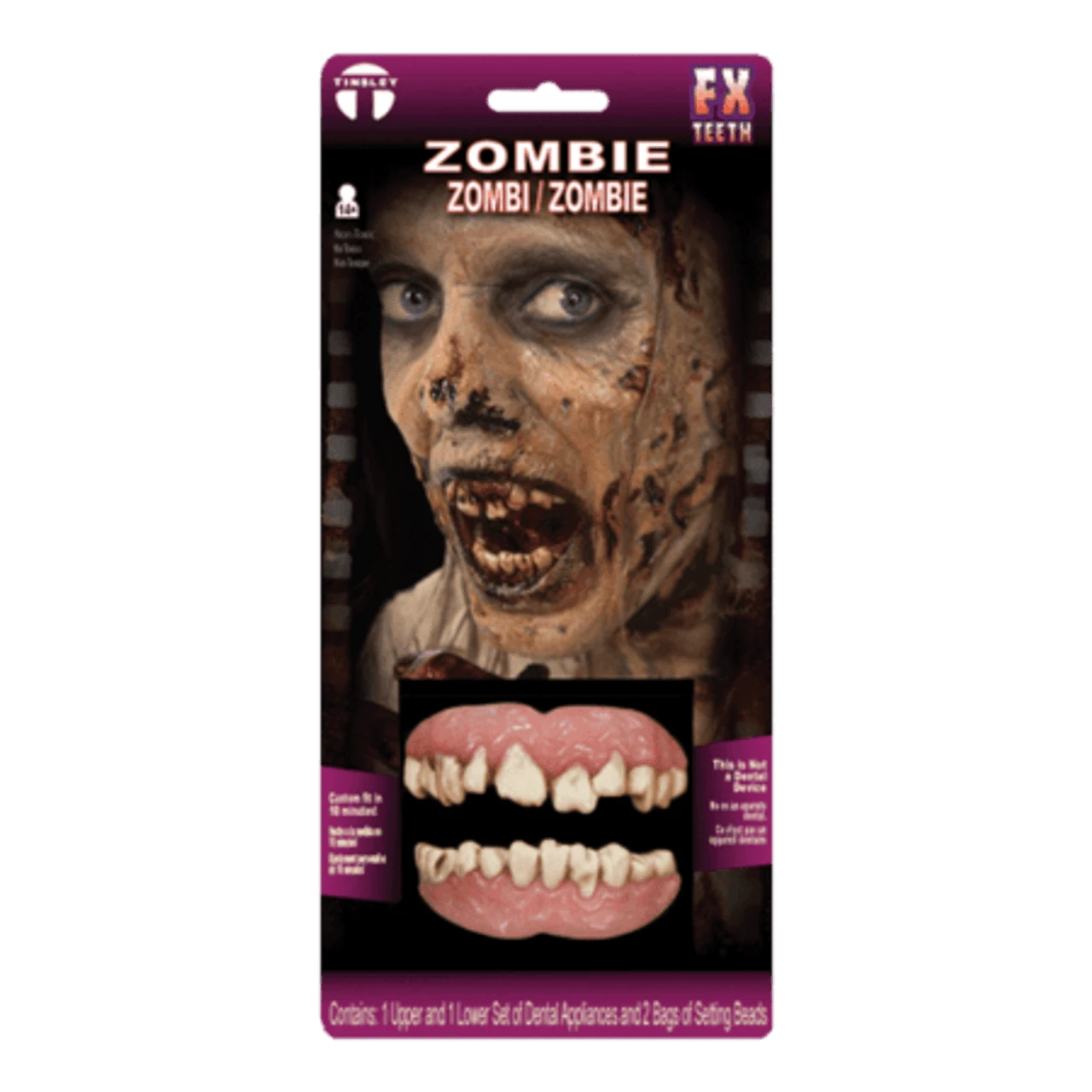 Take your zombie look to the next level with these high quality, realistic Zombie Teeth from Tinsly Transfer. The set includes upper and lower jaw that can be shaped to the curve of the mouth and held in place with thermoplastic beads. The crooked teeth can also be used for many animal costumes.Â